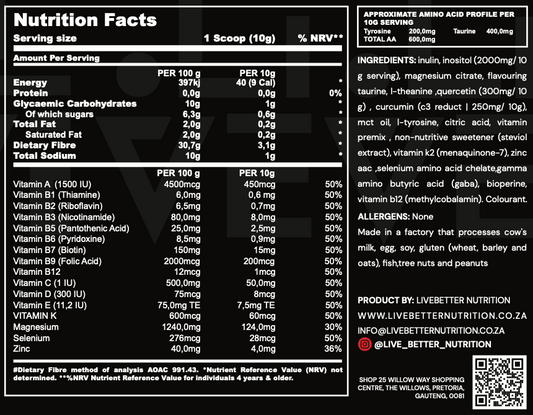 We understand the struggles of balancing work, fitness, personal life and the desire to keep getting better. These products can’t change that. But what they can do is offer you support in mental clarity, energy, stress and muscle recovery. They are purely the fuel to help you livebetter.